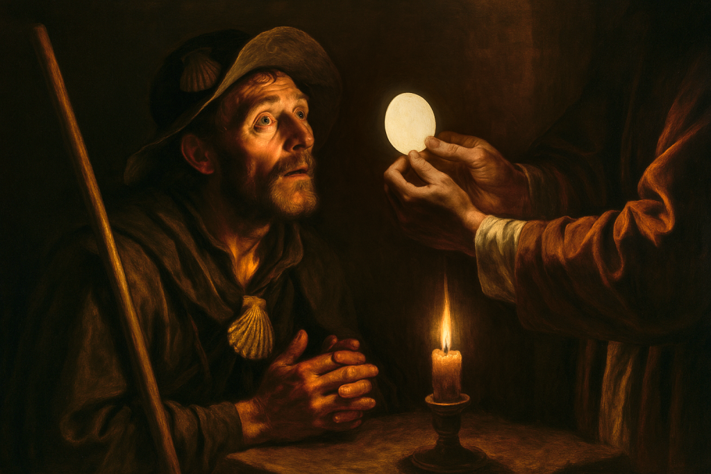 One stormy night in 14th-century Galicia, a priest in the small mountain village of O Cebreiro was celebrating Mass. His heart had grown cold; he no longer believed in the Real Presence of Christ in the Eucharist. Yet one lone pilgrim still arrived — exhausted, soaked by the snowstorm, but determined to attend the Holy Sacrifice.